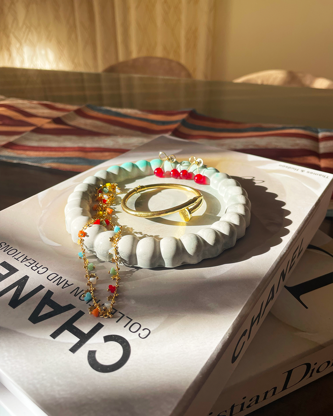Perfect for displaying jewelry, candles, or as a delicate accent on your vanity.