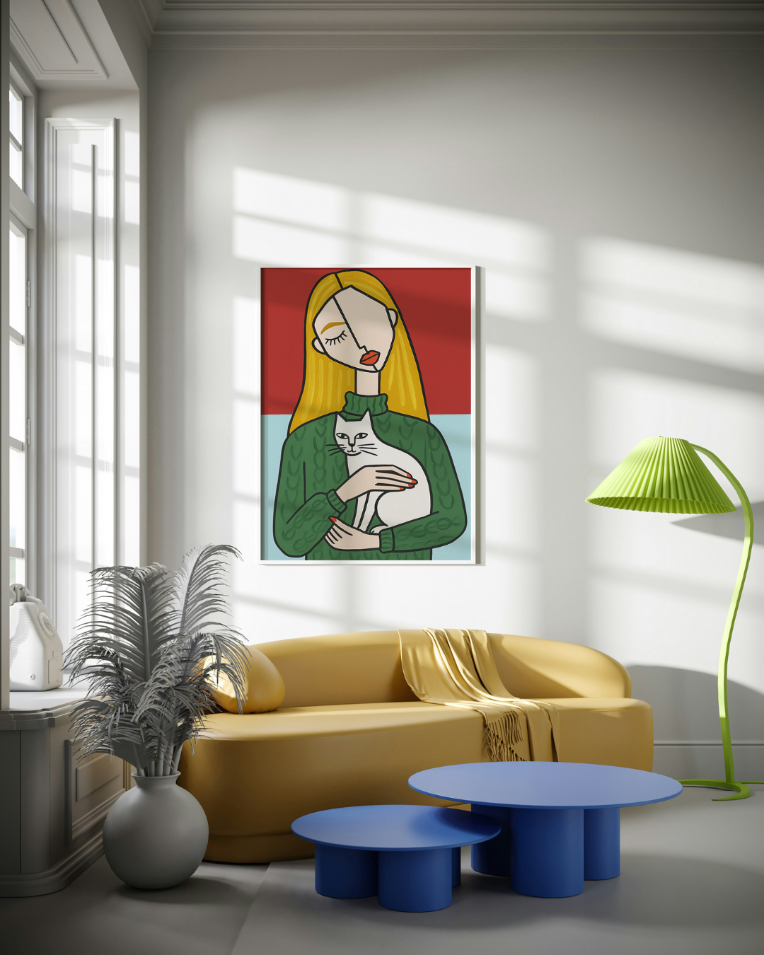 With bold colors and minimal lines, this piece brings a sense of calm, introspection, and soft emotion into your space.