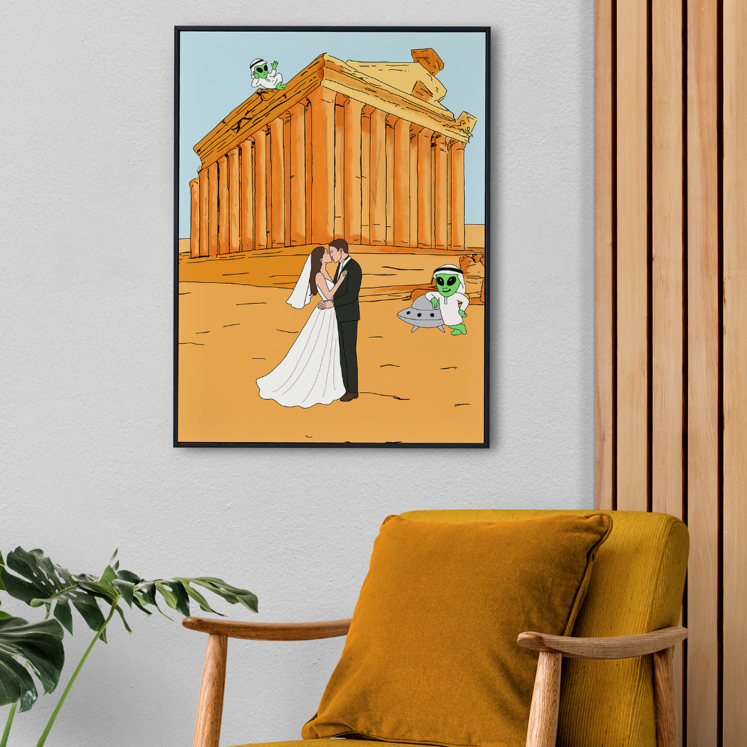 Bold, humorous, and full of personality, this piece adds a whimsical twist to your walls, perfect for those who believe love truly is out of this world.