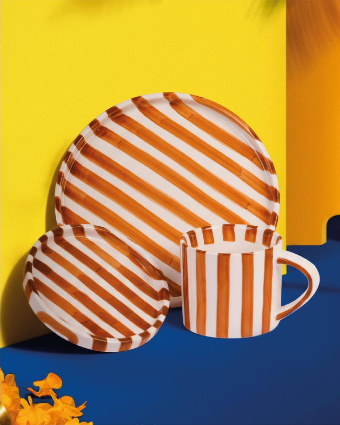 Hand-painted stripes, vintage energy, and just enough attitude to handle both your coffee and your crumbs. Comes with two plates, because one mood is never enough. Holds 200ml of bold decisions.