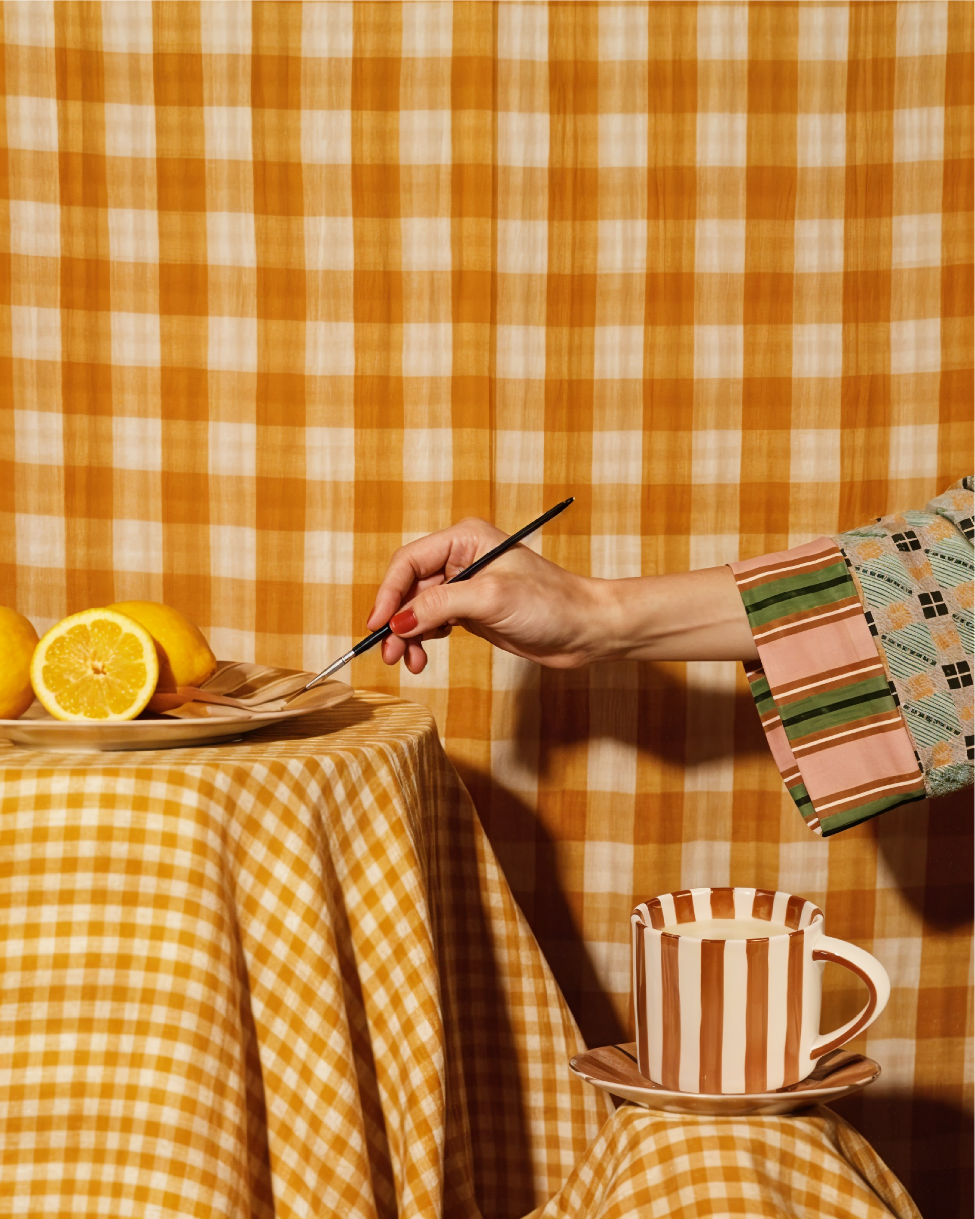 Hand-painted stripes, vintage energy, and just enough attitude to handle both your coffee and your crumbs. Comes with a small plate, because one mood is never enough. Holds 200ml of bold decisions.