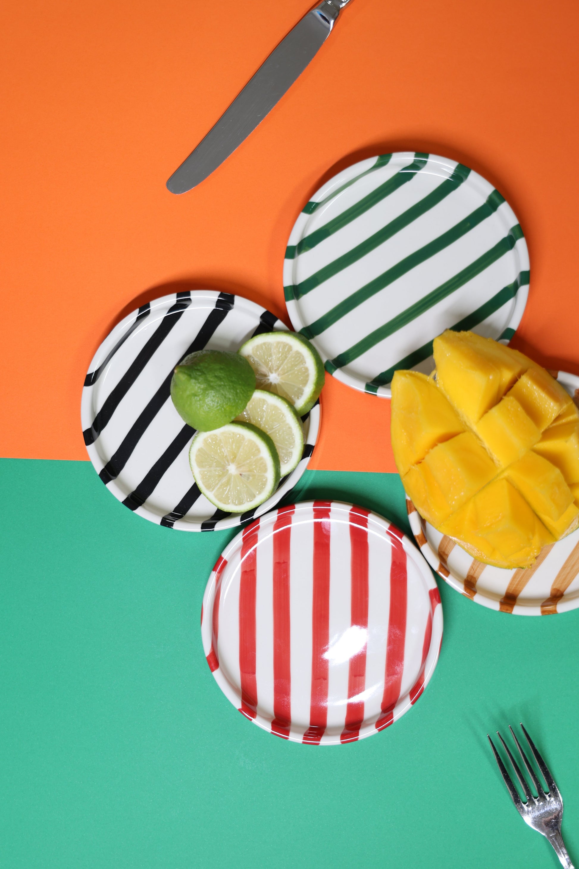 A plate with personality. Hand-painted stripes meet creamy ceramic curves in this 14.5 cm dish — the perfect canvas for cake, pasta, or whatever joy tastes like today. Bold, playful, and unapologetically fun, just like your table should be.